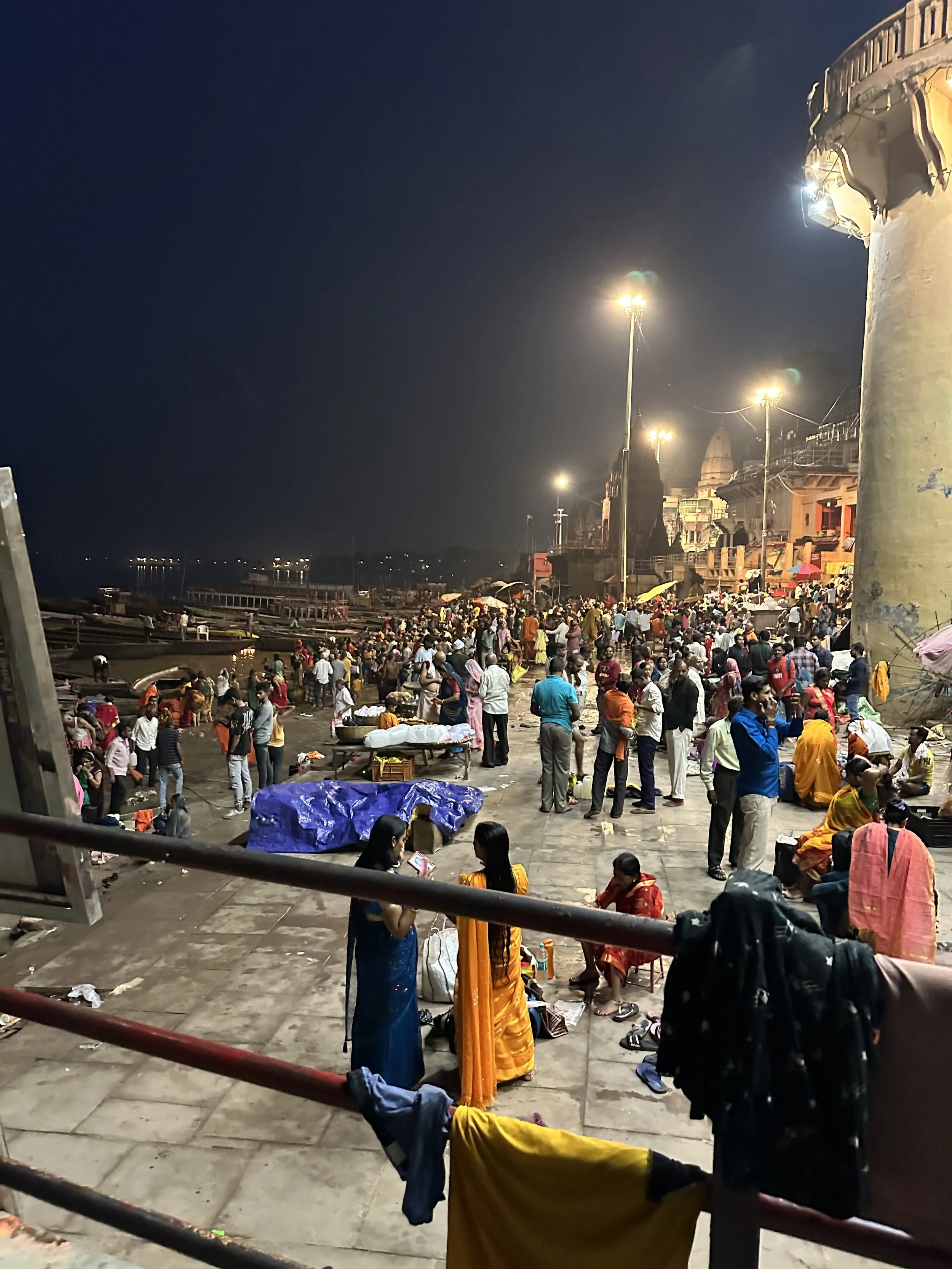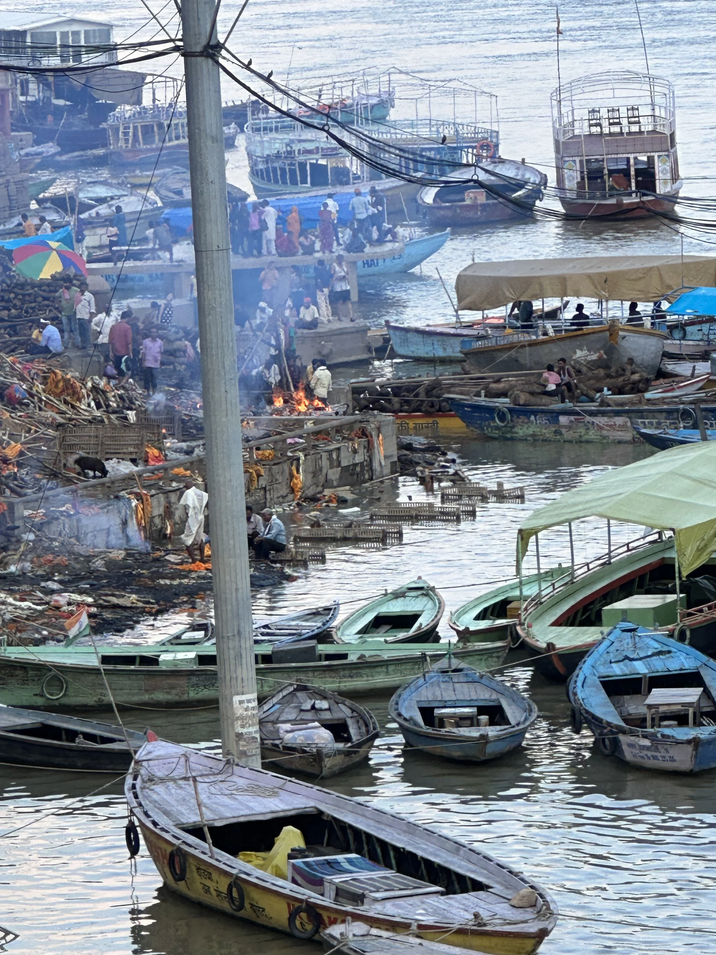 Zu Varanasi: Unglaubliche Stadt! Dieser Besuch hat mich ganz tief beeindruckt. Aus den vielen Aussagen, dass diese und jene Leute in meinem Umfeld niemals nach Indien fahren würden, weil es zu schmutzig sei, höre ich immer wieder, dass vor allem das Schwimmen im Ganges in dieser Stadt komplett irrsinnig sei. Ich sehe aber, dass Varanasi eine spirituelle Kraft hat, wie ich sie selten wahrgenommen habe. Natürlich ist es ein wenig seltsam, wenn man mitten auf dem Verbrennungsplatz steht und mitbekommt, wie die Toten dort durch die (männlichen!) Angehörigen hingetragen, auf den Holzstapel gelegt und angezündet werden. Aber es ist nicht unnatürlich, und der Schrecken, jetzt Leichen brennen zu sehen, war nicht da! Natürlich, respektvoll – und der Übergang von einer Welt in die nächste war für mich spürbarer.